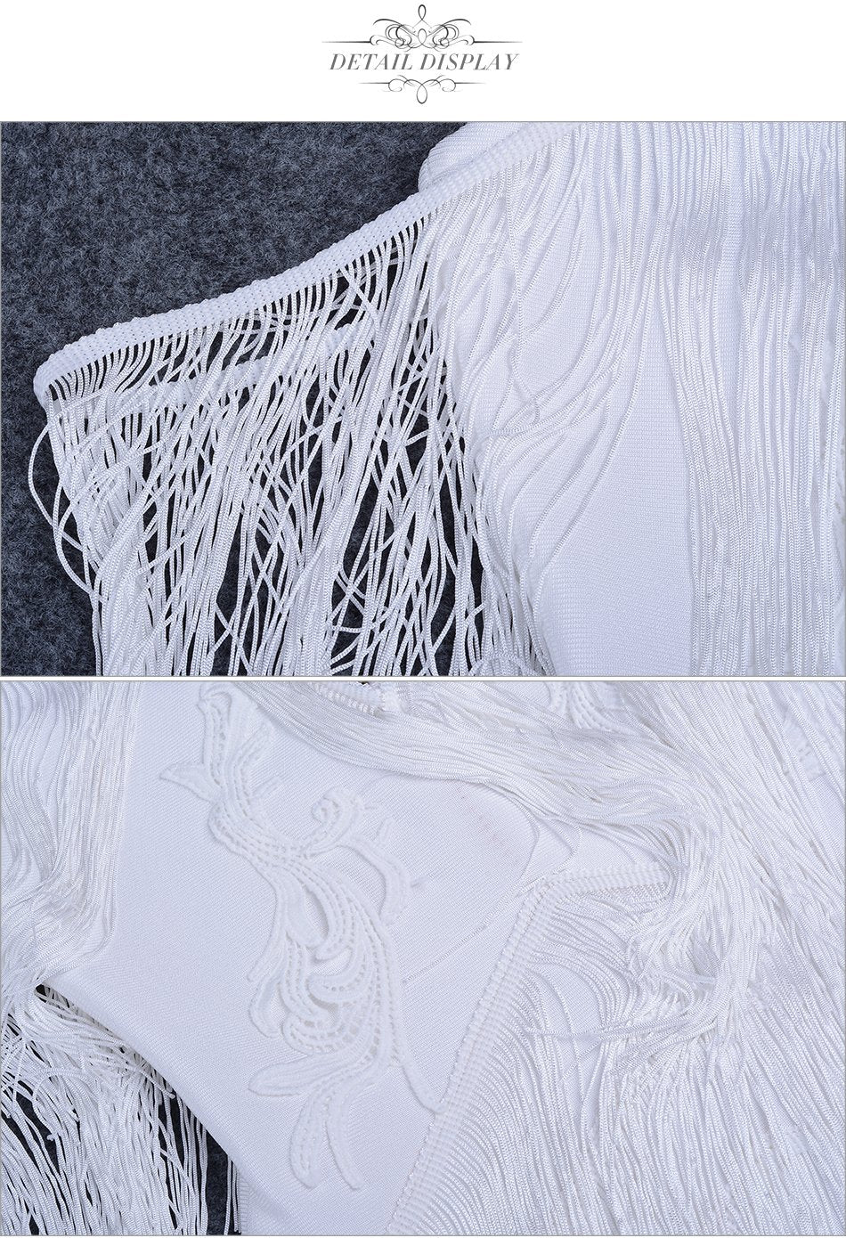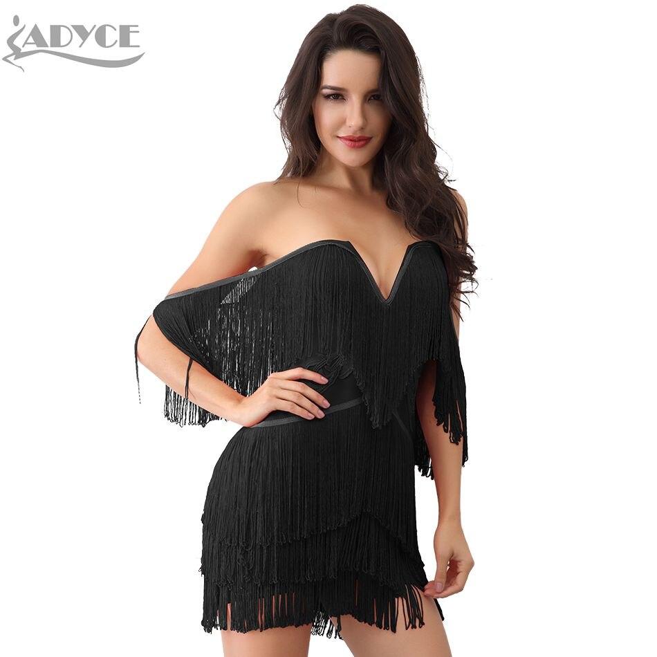 ADYCE Elegant V Neck Off Shoulder Sexy Fringe Short Sleeve Tassel Bandage Party Dress - H3048