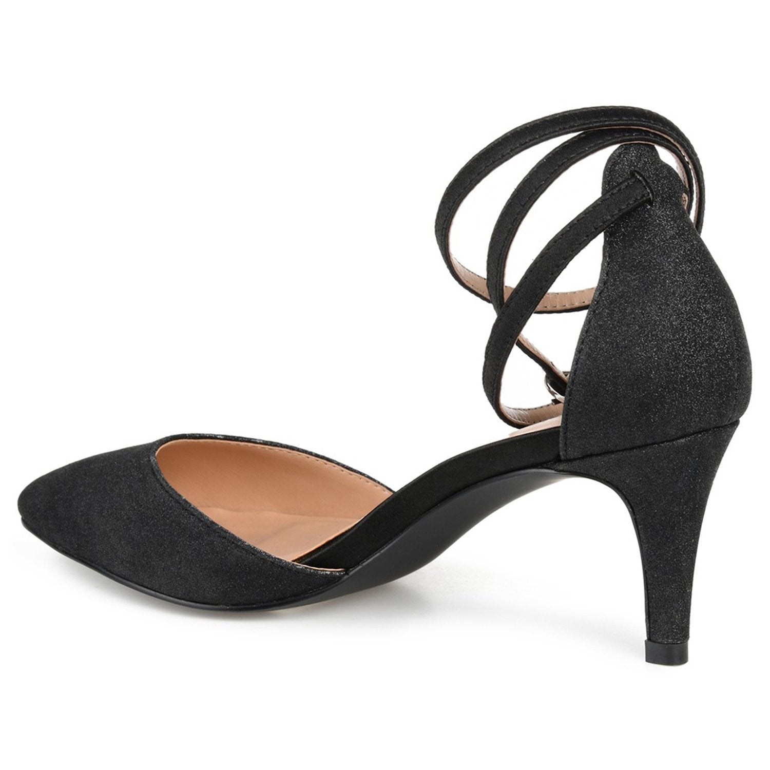 Dress for the occasion with evening shoes by Journee Collection. These D’Orsay pumps highlight glittery uppers and a pointed toe style. An elegant straps connects to closed back heels and wraps up the ankle to finish the design.